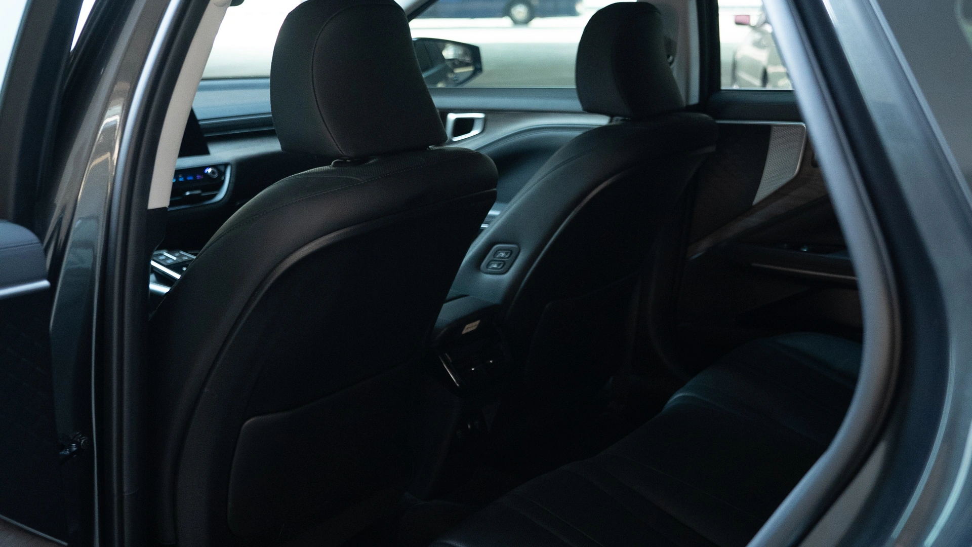 Interior: leather-trimmed cabin, spacious seats with heating and ventilation, premium materials, panoramic roof.