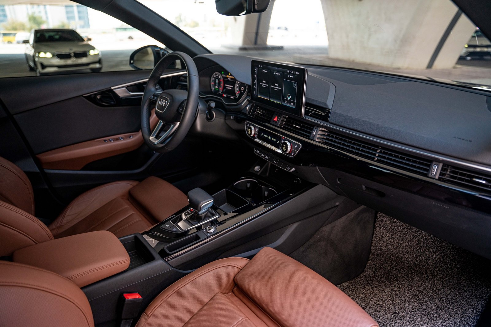 - Технологии – MMI Navigation+, Apple CarPlay/Android Auto, адаптивный круиз-контроль, задняя камера + парктроники.